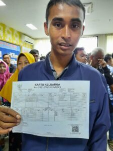 Demak – Jumat (28/02/2020), Moh. Abdul Muhlis terima Kartu Keluarga (KK) dari petugas Front Office Bagian Pengambilan Dokumen, Hasnul di Ruang Pelayanan Dindukcapil Kab. Demak Lantai 1. Muhlis yang merupakan warga Karanganyar Kab. Demak ini melakukan perubahan data pada status pendidikannya dan adik-adiknya. Yang semula dirinya masih berstatus pendidikan tamat SD, menjadi SLTA. Kartu Keluarga …