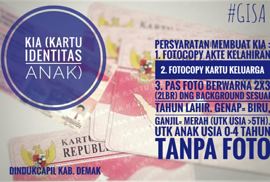 Sejak April Tahun 2019 silam, Dindukcapil Kab. Demak sudah mulai menerbitkan KIA. Bahkan sudah bekerjasama dengan sekolah-sekolah untuk mengumpulkan berkas secara kolektif, supaya anak-anak bisa memperoleh KIA. Rustiyono, Kabid Pelayanan Pendaftaran Penduduk Dindukcapil Kab. Demak, menjelaskan bahwa tujuan Pembuatan Kartu Identitas Anak (KIA) sesuai dengan yang disebutkan dalam Pasal 2 Permendagri 2 tahun 2016 tentang Kartu Identitas Anak yaitu bahwa Pemerintah menerbitkan KIA bertujuan untuk meningkatkan pendataan, perlindungan dan pelayanan publik serta sebagai upaya memberikan perlindungan dan pemenuhan hak konstitusional warga negara. Manfaat KIA diantaranya adalah untuk memenuhi hak anak, untuk persyaratan mendaftar sekolah, untuk bukti diri anak sebagai data identitas ketika membuka tabungan atau menabung di bank, juga berlaku untuk proses mendaftar BPJS dan lainnya.