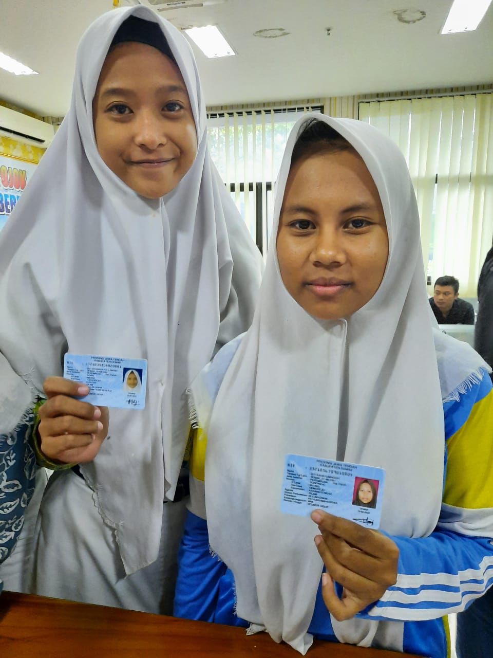 Demak – Siti Rania dan Siti Sofiah yang merupakan siswa SMK di Kab. Demak, akhirnya resmi mendapatkan kartu identitas mereka. Tidak sia-sia usaha mereka untuk berjuang demi mendapatkan identitas resmi mereka, pada hari Jumat (21/02/2020) sepulang sekolah mereka langsung menyambangi Dindukcapil Kab. Demak guna mengantri untuk mendaftar pembuatan KTP-el.