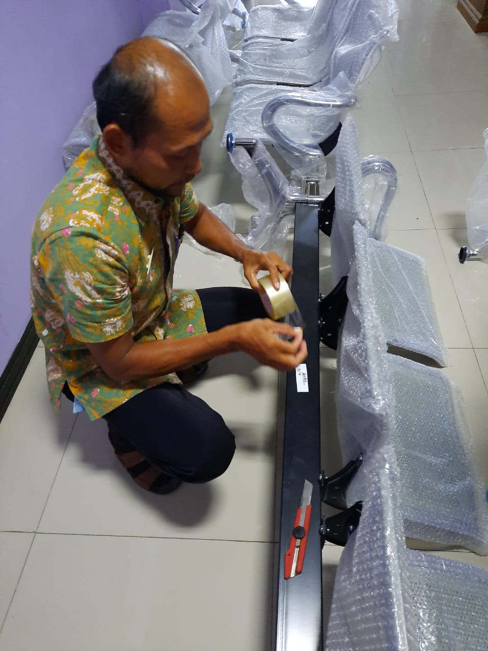 Demak – Kamis (27/02/2020), Pengurus Barang Dindukcapil Kab. Demak, Akhmad Suyikno, S.Sos melakukan identifikasi terhadap barang yang baru datang kemarin (26/02/2020) sore. Barang tersebut berupa Kursi Tunggu. Pada tahun 2020, Dindukcapil Kab. Demak melakukan pembelian barang berupa kursi tunggu sebanyak 6 buah.