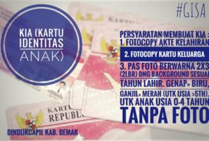 Demak – Kartu Identitas Anak diatur dengan Peraturan Menteri Dalam Negeri Nomor 2 tahun 2016 tentang Kartu Identitas Anak (KIA). Permendagri tentang Kartu Identitas Anak adalah upaya Pemerintah untuk memenuhi kewajibannya dalam memberikan identitas kependudukan kepada seluruh penduduk warga negara Indonesia yang berlaku secara nasional sebagai upaya perlindungan dan pemenuhan hak konstitusional warga negara. Kartu …