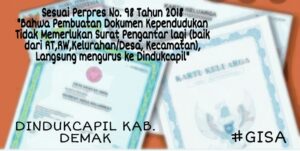 Demak – “Menurut Perpres ini, pelayanan pendaftaran penduduk terdiri atas pencatatan biodata penduduk, penerbitan KK (Kartu Keluarga), penerbitan KTP-el (Kartu Tanda Penduduk Elektronik), penerbitan surat keterangan kependudukan, dan pendaftaran penduduk rentan Administrasi Kependudukan tidak memerlukan lagi surat pengantar baik dari RT, RW, Kelurahan/Desa, Kecamatan,” tutur Kepala Dinas Dukcapil Kab. Demak, Drs. M. Afhan Noor, M.Pd. Pemerintah menerbitkan Peraturan …