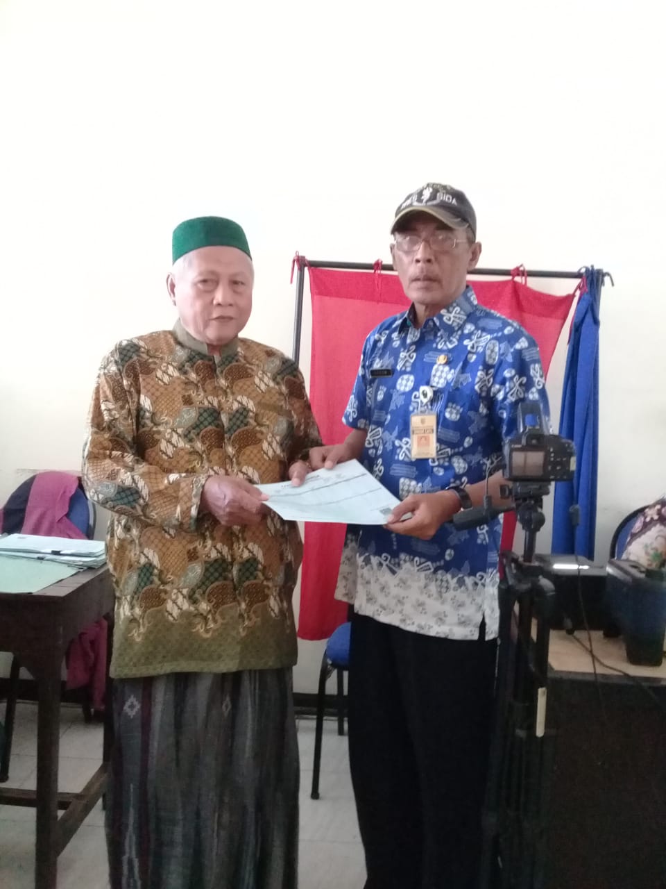 Demak – Kamis (05/03/2020) H.A. Wahib (69 tahun) yang merupakan warga desa Purwosari, Sayung Kab. Demak menerima Kartu Keluarga (KK) baru miliknya. Dirinya melakukan perubahan data kependudukan pada status perkawinannya di KK miliknya, yaitu cerai mati. Dengan dilampiri fotokopi surat keterangan kematian almarhumah istrinya dari Desa setempat, Wahib melakukan pembaharuan data kependudukan di Kecamatan Sayung.