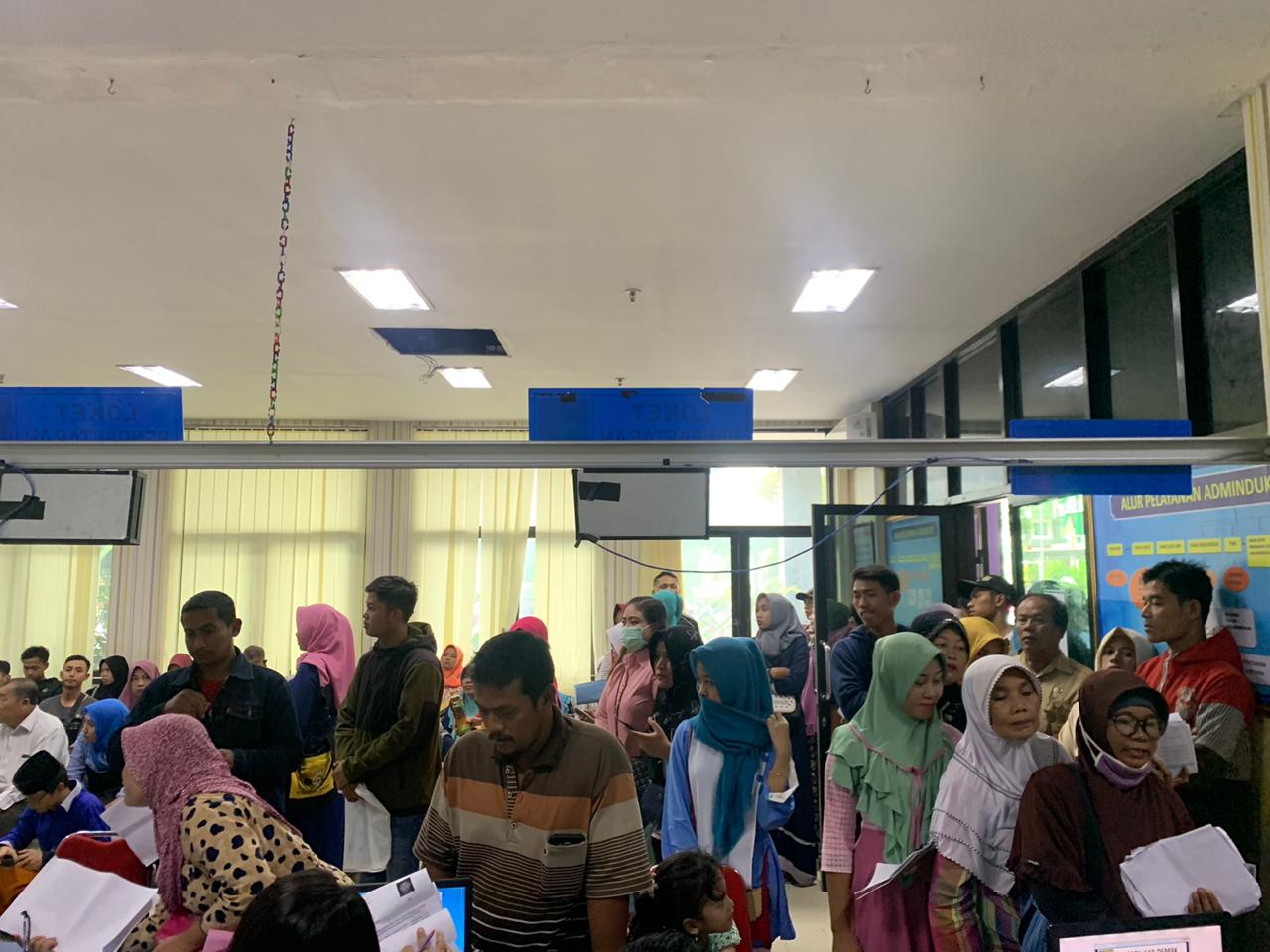 Demak – Kondisi antrian warga yang mengurus dokumen administrasi kependudukan pada Senin (09/03/2020), di Ruang Pelayanan Dindukcapil Kab. Demak, terpantau padat dan ramai. Begitu pintu ruang pelayanan dibuka, warga sudah terlihat mengantri untuk mengambil nomor antrian pelayanan.