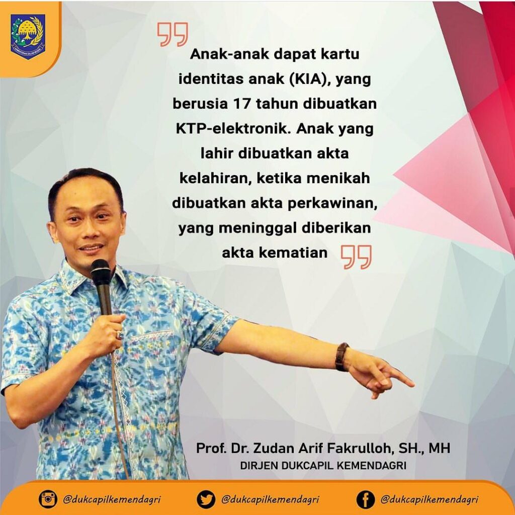 Demak – Layanan Dukcapil setia menyertai masyarakat. Mulai dari lahir hingga meninggal dunia, dari satu lubang ke lubang lainnya. Anak baru lahir diberi Akta Kelahiran dan KIA. Beranjak ia dewasa, diberi KTP-el. Hingga ia menikah diberi Akta Perkawinan, dan bila bercerai diberi Akta Perceraian. Hingga tiba di ujung masa hidupnya, ia diberi Akta Kematian.