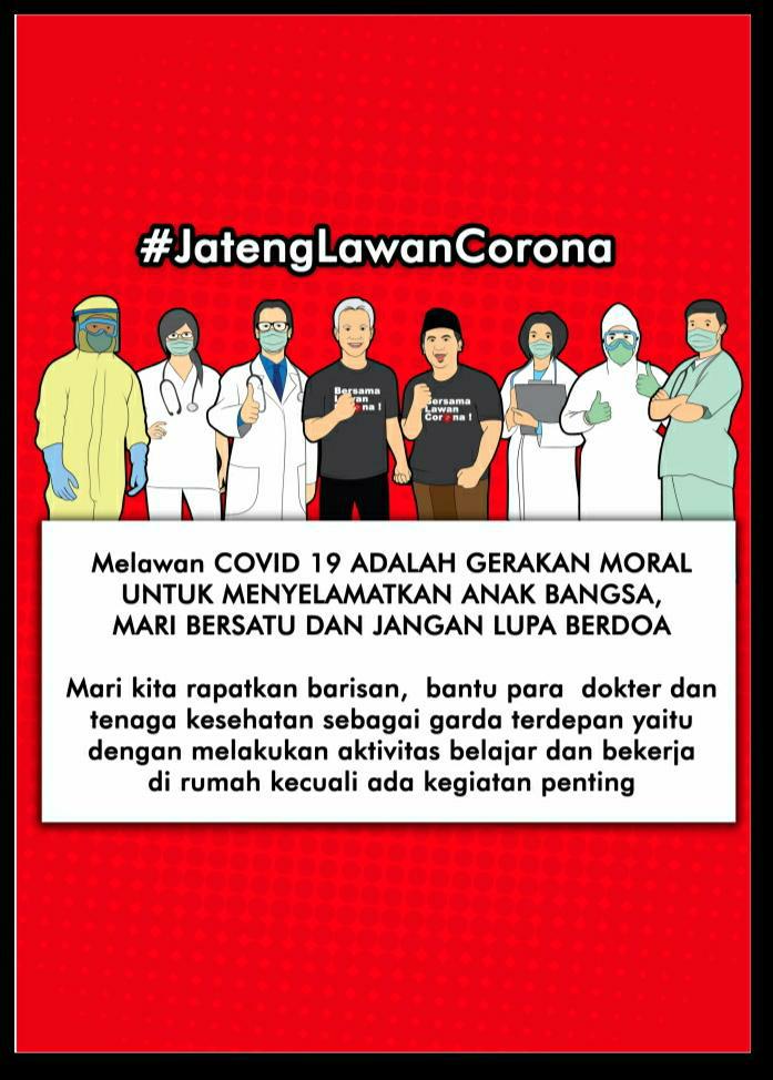 Demak – Melawan COVID-19 ADALAH Gerakan Moral Untuk Menyelamatkan Anak Bangsa,Mari Bersatu dan Jangan Lupa Berdoa Kepada Tuhan Yang Maha Esa . Serta mari kita rapatkan barisan , membantu para dokter dan tenaga kesehatan sebagai garda terdepan yaitu dengan melakukan aktivitas belajar dan bekerja di rumah kecuali ada kegiatan mendesak.