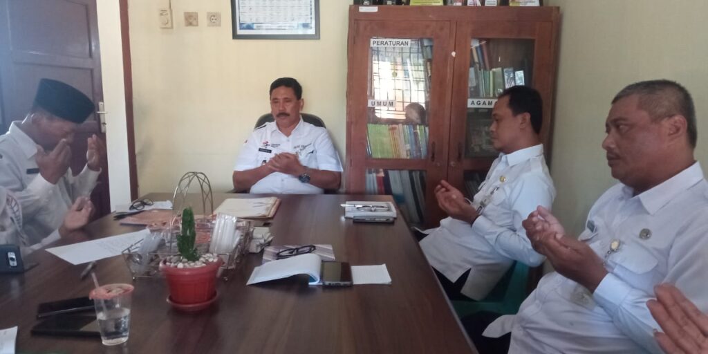 Dua orang pegawai Dindukcapil Kab. Demak yang bertugas di TPDK (Tempat Perekaman Data Kependudukan) Kecamatan Karanganyar, Ahmad, S.Sos dan Endang Sulistyowati, S.Pd mengikuti acara selamatan dan doa bersama dengan para pegawai di Kecamatan Karanganyar, yang dipimpin oleh Camat Karanganyar, Sugianto, S.IP, MM dengan pemimpin doa bersama, Sutardi, SE, Kasi Tapem Kecamatan Karanganyar.