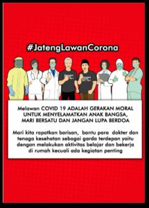 Demak – Melawan COVID-19 ADALAH Gerakan Moral Untuk Menyelamatkan Anak Bangsa,Mari Bersatu dan Jangan Lupa Berdoa Kepada Tuhan Yang Maha Esa . Serta mari kita rapatkan barisan , membantu para dokter dan tenaga kesehatan sebagai garda terdepan yaitu dengan melakukan aktivitas belajar dan bekerja di rumah kecuali ada kegiatan mendesak. Terimakasih yang sudah masyarakat yang sudah …