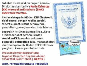 Demak – Kartu Keluarga merupakan database (SIAK) elektronik tercetak. Jika data pada KK dan KTP-el tidak sesuai dengan realita terkini, seperti alamat, status perkawinan, pendidikan, pekerjaan atau data lainnya. Maka segeralah masyarakat untuk ke Dindukcapil dimana kita berdomisili dengan membawa KK lama dan dokumen pembukti perubahan data. Maka masyarakat akan mendapatkan KK dan KTP-el terbaru …