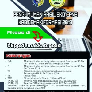 Demak – Bagi warga Demak yang kemarin mengikuti seleksi CPNS Tahun Anggaran 2019, hari ini (22/03/2020) pengumuman hasil SKD atau Seleksi Kemampuan Dasar CPNS Kabupaten Demak untuk formasi tahun 2019 sudah keluar. Dilansir dari BKPP Kab. Demak untuk hasil pengumuman SKD CPNS 2019, warga Demak dihimbau untuk langsung mengecek via link https://bkpp.demakkab.go.id/2020/03/pengumuman-hasil-skd-tahun-2019.html Adalah Diana Puspitasari, …