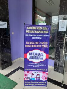 Demak – Pemerintah mengimbau masyarakat tetap berada di rumah sambil bekerja dari rumah untuk mencegah penyebaran virus Corona. Ditjen Dukcapil Kemendagri mengimbau masyarakat juga menunda ke luar rumah untuk mengurus dokumen kependudukan jika tidak terlalu mendesak. “Kunci di China yang sukses melawan Corona salah satunya adalah melakukan upaya ‘jaga jarak’, tidak saling bertemu, tidak berkumpul. …