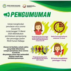 Demak – Bagi masayarakat Demak yang keluarganya sedang dirawat di RSUD SUKA atau ingin menjenguk saudara,teman, ataupun kekasinya. Dimohon untuk diperhatikan Pengumuman diatas, pengumuman resmi yang telah dikeluarkan oleh RSUD Sunan Kalijaga Kabupaten Demak. Untuk mengendalikan COVID-19(CORONA) RSUD SUKA melakukan pembatasan pengunjung dan penunggu pasien yang dirawat. Mari kita lawan bersama COVID-19 dengan tetap tenang, jangan …