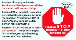Demak – Minggu (29/03/2020) Sahabat Dukcapil dimana pun berada, bahwasanya perekaman KTP-el hanya satu kali seumur hidup. Jikalau sahabat melakukan perekaman KTP-el beberapa kali di berbagai tempat, maka perekaman pertama yang dapat diterima oleh sistem komputer. Perekaman kedua dan seterusnya, otomatis si Komputer berkata “Anda sudah pernah merekam KTP-el, perekaman kedua dan seterusnya Duplikat Perekaman”.Jikalau …