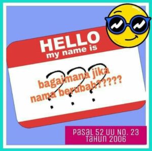 Demak – Minggu (29/03/2020) “Saya mau merubah nama saya, gimana caranya ya? Nah, begini jawabannya, sesuai Pasal 52 UU No. 23 Tahun 2006 tentang Administrasi Kependudukan mengatur bahwa perubahan nama dilaksanakan berdasarkan penetapan pengadilan negeri tempat pemohon. Selanjutnya, perubahan nama tersebut wajib didaftarkan oleh orang yang berubah namanya tersebut kepada Catatan Sipil yang menerbitkan akta …