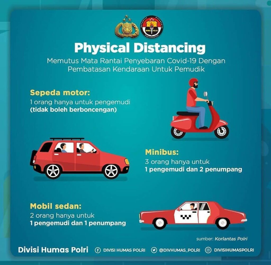 Sedangkan untuk yang mengendarai Mobil sedan cukup 2 orang, hanya untuk 1 pengemudi dan 1 penumpang. Untuk mobil Minibus hanya cukup 3 orang hanya untuk 1 pengemudi dan 2 penumpang. Sumber: Korlantas Polri