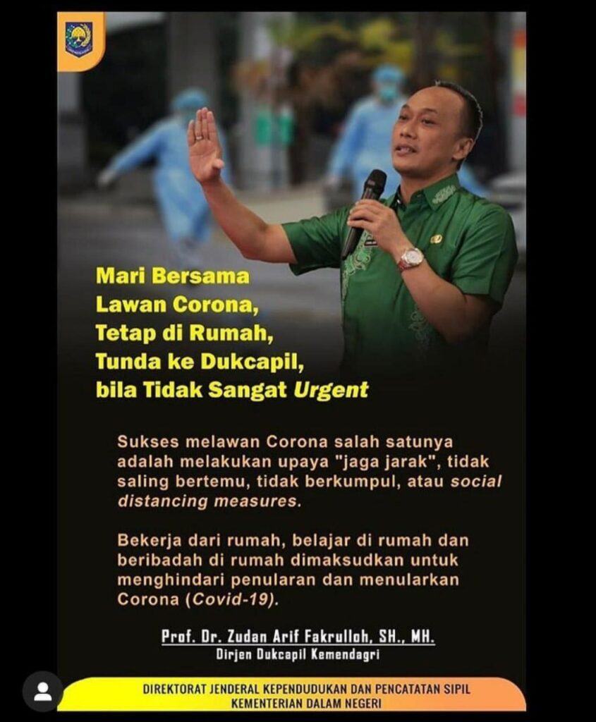 Hal ini perlu kita lakukan untuk memutus mata rantai penularan virus corona atau covid 19 sesuai surat Dirjen Dukcapil KDN RI Nomor : 443.1/2978/Dukcapil.