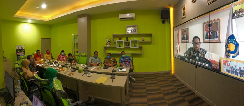 Bertempat di command center, Kamis (9/4) Bupati HM. Natsir didampingi Wakil Bupat, Sekda dan para pejabat yang tergabung dalam Gugus Tugas Penanganan covid-19 di Kabupaten Demak mengikuti rakor bersama Mendagri, Menkopolhukam, Menkeu, Mendes PDTT dan Mensos, melalui video conference.