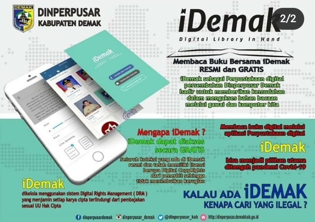 dan teman-teman bisa download langsung lewat play store dan app store ketik saja iDemak solusi mudah, praktis baca dan pinjam buku dimanapun anda berada (sumber : Dinperpusar Kab. Demak)