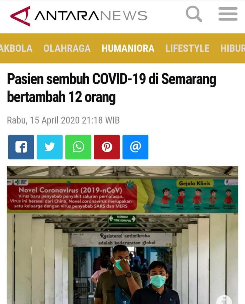 Semarang (ANTARA) – Dinas Kesehatan Kota Semarang mencatat 12 pasien positif COVID-19 yang dirawat di sejumlah rumah sakit di Ibu Kota Jawa Tengah ini dinyatakan sembuh pada Rabu (15/4). ‘Kesembuhan pasien pada hari ini merupakan yang terbanyak terjadi di Semarang selama pandemi corona,” kata Kepala Dinas Kesehatan Kota Semarang Abdul Hakam di Semarang, Rabu.