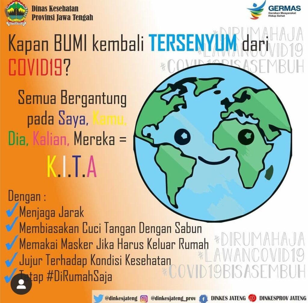 Sehingga kita juga jangan lupa himbauan dari Pemerintah untuk selalu jaga Jarak aman, Biasakan Cuci Tangan Pakai Sabun, Pakaj Masker Jika Memang Harus Keluar Rumah, Jujur pada Kondisi Kesehatan Diri, Tetap di rumah saj,serta berdoa.