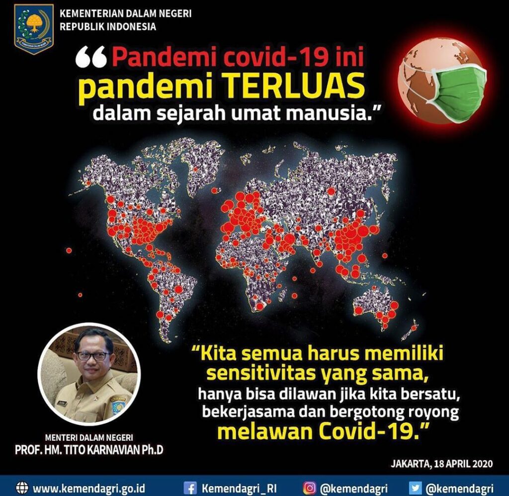 Demak – Senin (20/04/2020). Menteri Dalam Negeri RI, Prof. HM. Tito Karnavian , Ph.D mengajak kita semua untuk memiliki sensitivitas yang sama dan bergotong royong membantu saudara kita yang terdampak Covid-19