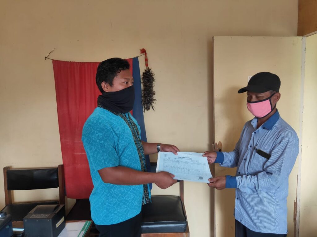 Petugas TPDK Kecamatan Kebonagung Serahkan KK Pada Warga