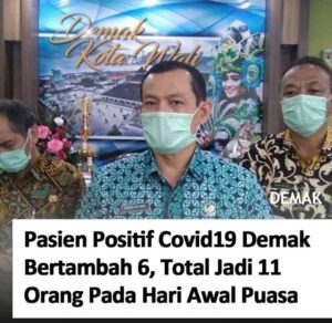 Demak – Jumlah pasien positif corona di Kabupaten Demak bertambah 6 orang. Pasien positif corona di Demak yang awalnya masih 5 orang kini menjadi 11 orang pada Jumat 24 April 2020 (hari ini) yang bertepatan dengan awal puasa 1 Ramadhan. Dilansir Tribunjateng, Juru Bicara Gugus Tugas Covi19 Kabupaten Demak, Singgih Setyono mengatakan 5 pasien dirawat …