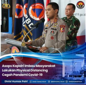 Demak – Dilansir dari Divisi Humas Polri, Asisten Operasi (Asops) Kapolri Irjen Pol. Drs. Herry Rudolf Nahak, M.Si., imbau masyarakat untuk melakukan physical distancing sesuai Maklumat Kapolri Jenderal Polisi Drs. Idham Azis, M.Si., serta mendukung kebijakan pemerintah Indonesia, guna mencegah pandemi covid-19 (virus corona), Jakarta, Sabtu (4/4). “Untuk kemudian kebijakan itu ditindak lanjuti oleh bapak …