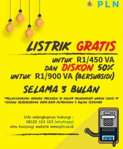 Listrik Gratis bagi R1/450 dan Diskon 50 persen R1/900 VA (Bersubsidi) selama 3 Bulan