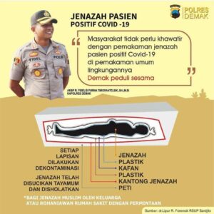 Demak – Sabtu (04/04/2020) “Masyarakat tidak perlu khawatir dengan pemakaman jenazah pasien positif Covid-19 di pemakaman umum lingkungannya, Demak Peduli Sesama” himbau AKBP R. Fidelis Purna Timuranto, S.IK, SH, M.Si, Kapolres Demak. Karena kepengurusan jenazah positif COVID-19 sebelum dimakamkan sudah melalui protokol. Diantaranya di setiap lapisan yang terdiri dari jenazah itu sendiri yang telah terbungkus …