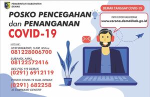 Demak – Jumat, 03/04/2020. Sebagai usaha Percepatan Pencegahan dan Penanganan Virus Corona atau COVID19, Tim Gugus Tugas Pencegahan dan Penaganan COVID19 menambahkan Hotline Pencegahan dan Penanganan, antara lain, Heri Winarno- 081228006700, Subandi – 08122572416 atau di Des PSC 119 Demak (0291)6912119 dan Nomor Posko COVID-19 Kabupaten Demak bertempat di Command Center di (0291)682258. Dipersilakan bagi Sahabat Dukcapil yang mempunyai …