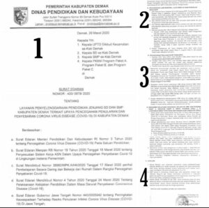 Demak – Rabu (01/04/2020) Makin meluas maka kebijakan KBM (Kegiatan Belajar Mengajar) Mandiri dirumah. Diperpanjang sampai tanggal 13 April 2020. Saat ini masih saja sering ditemui beberapa anak usia pelajar yang nongkrong-nongkrong diluar. Protokol Pencegahan ini dilakukan agar mengurangi potensi penyebaran dengan belajar dirumah. Bukan kesempatan untuk dolan dan nongkrong-nongkrong. Orang tua juga diharapkan mengawasi …