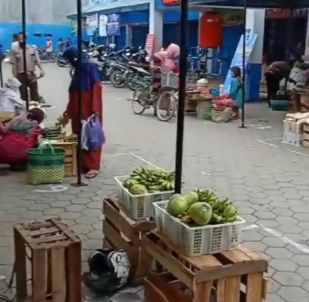 Di hari Pendidikan Nasional ini ada suasana belajar di masyarakat: Suasana PSBB atau di kota Tegal. Pasarnya ditata juga, diberikan jarak minimal 1 meter pada setiap antar pedagang dalam upaya pencegahan covid 19.