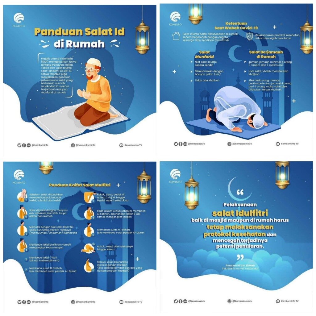 Buat Sobat Mindukcapil Demak yang ingin melaksanakan salat Idulfitri dirumah saja sendiri maupun bersama keluarga tercinta, yuk simak panduan berikut. Gimana Sob, apa nih yang sudah kamu persiapkan untuk menyambut Idulfitri?