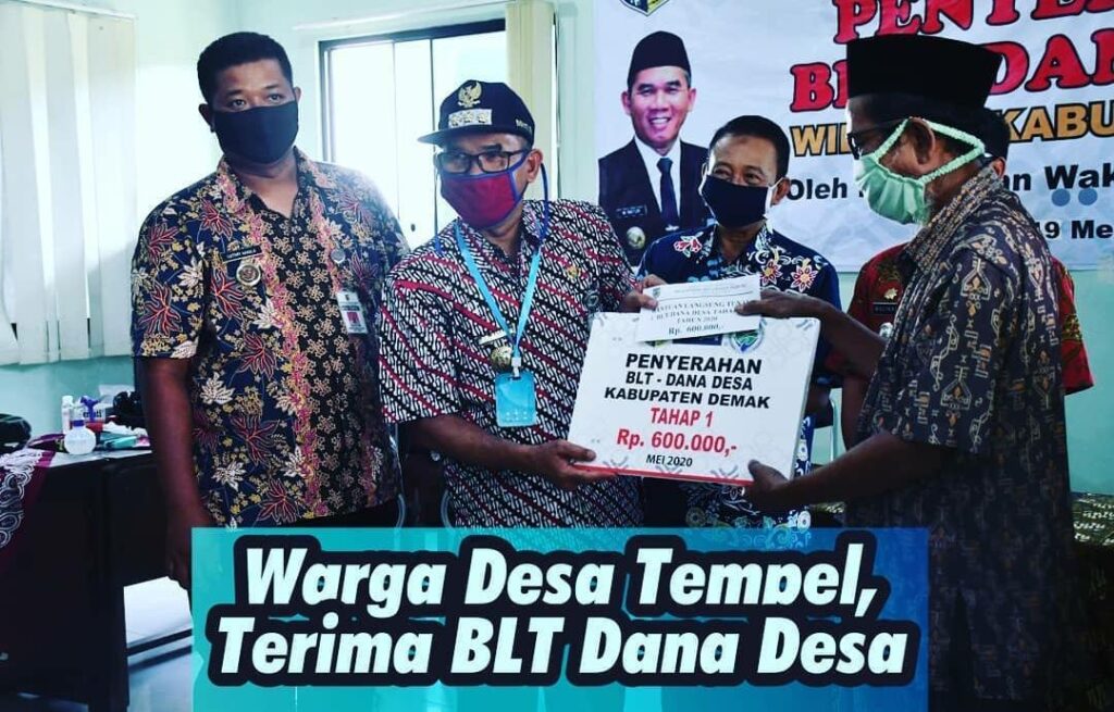Dalam laporanya di hadapan Bupati dan rombongan, Kades Tempel Lutfi menyampaikan, ” Pencairan BLT dari dana desa untuk 110 warga kurang mampu dan terdampak Covid-19 dilakukan hari ini. Mereka menerima uang tunai sebesar Rp. 600.000,- per orang”. (sumber : Dinkominfo Kab. Demak).