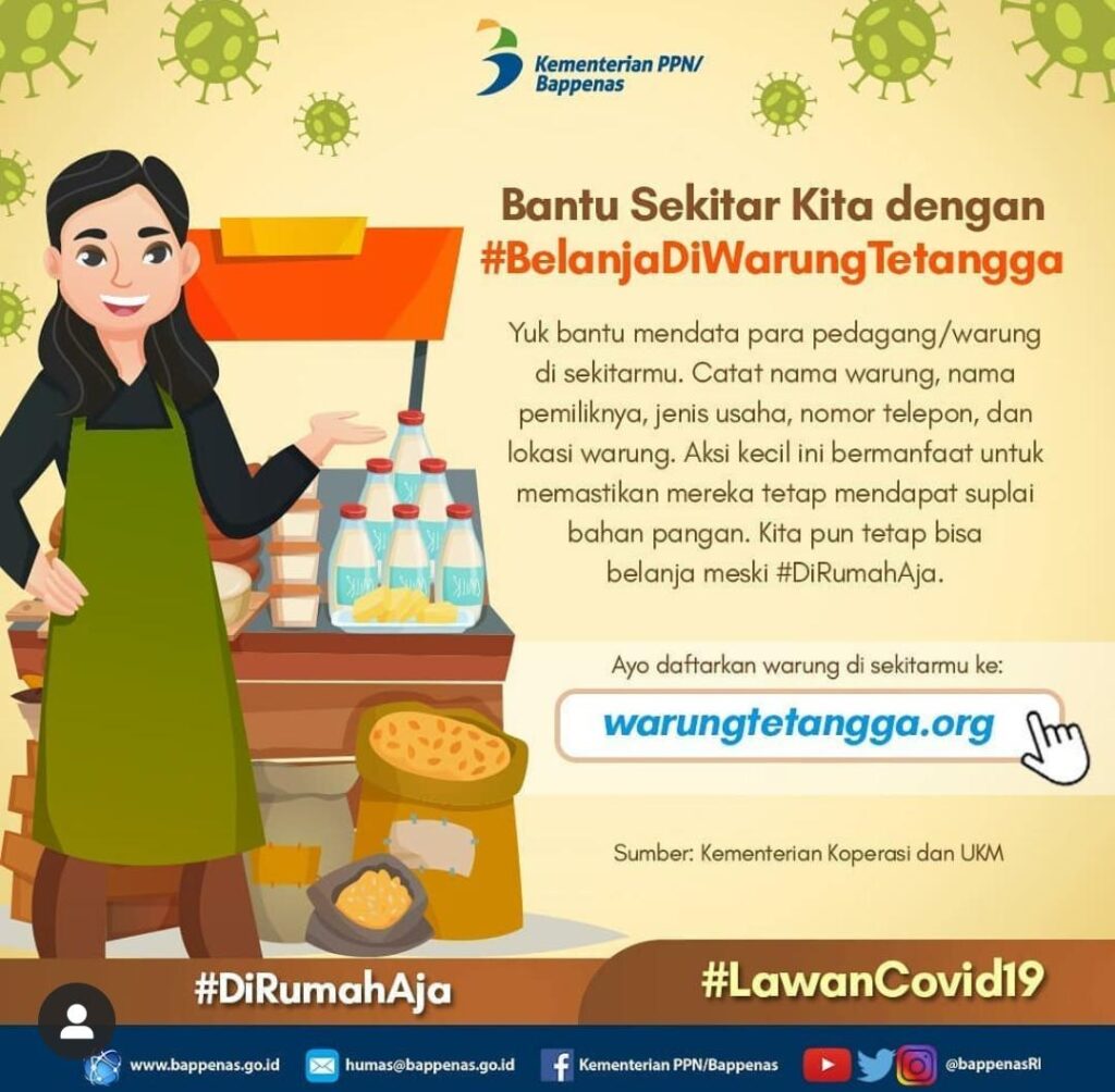 Kamu juga bisa #BelanjaDiWarungTetangga via daring untuk memenuhi kebutuhan pokok selama pandemi Covid19. Dengan berbelanja di warung tetangga, kamu juga membantu memperkuat ekonomi UMKM. Yuk lakukan kebaikan hari ini! .