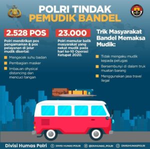 Demak – Kamis (14/5), POLRI TINDAK PEMUDIK BANDEL – 2.528 POS -> Polri mendirikan pos pengamaman & pos pelayanan di jalur mudik – 23.000 -> Polri memutar balik masyarakat yang nekat mudik pada hari ke-10 Ops Ketupat 2020. Untuk itu masyarakat Indonesia diminta untuk mengikuti himbauan pemerintah untuk tidak mudik demi kebaikan bersama dalam memutus mata …