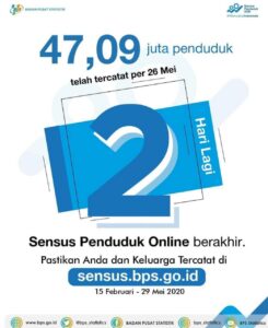 Demak – Rabu (27/5), Perhelatan Sensus Penduduk Online akan berakhir pada 29 Mei 2020. Artinya masih ada waktu 2 hari bagi Anda dan keluarga untuk mencatatkan diri. Sebanyak 47,09 juta penduduk telah tercatat per 26 Mei. Ayo, luangkan waktu sejenak dengan tetap di rumah untuk menjawab pertanyaan sensus di laman: sensus.bps.go.id Siapkan KTP dan Kartu …