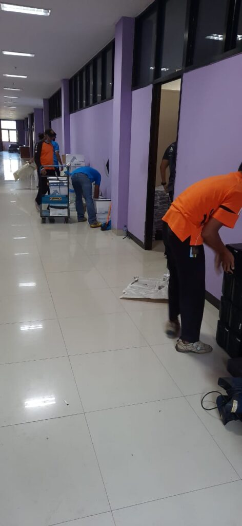 Demak – Pagi ini (12/6), Dindukcapil Kab. Demak dan Dindagkop UKM Kab. Demak melakukan kerja bakti dalam upaya pemindahan dan penataan ruangan. Kedua Dinas yang berlokasi di Gedung Ungu, akan bertukar tempat. UPTD Metrologi Dindagkop UKM Kab. Demak pindah di lantai 2 menempati ruang arsip. Sedangkan ruang arsip Dindukcapil Kab. Demak menempati di ruangan Metrologi lantai 1.