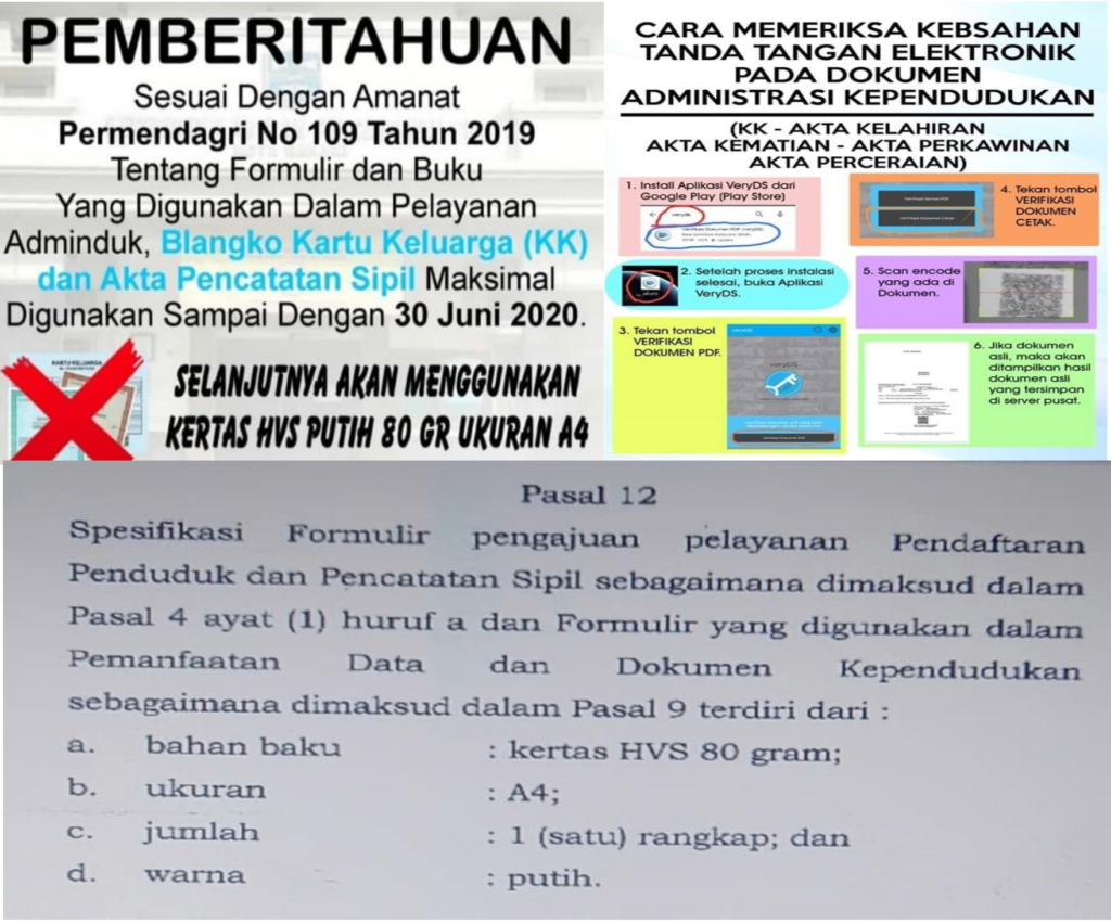 Demak – Sabtu (13/6), Tindak lanjut dari Peraturan Menteri Dalam Negeri Nomor 109 Tahun 2019 tentang Formulir dan Buku yang digunakan dalam Administrasi Kependudukan, terkait penggunaan kertas HVS A4 80 gram untuk pencetakan Kartu Keluarga (KK) untuk sementara dan akan menyusul dokumen-dokumen lainnya jika stok persediaan blangko sudah habis.