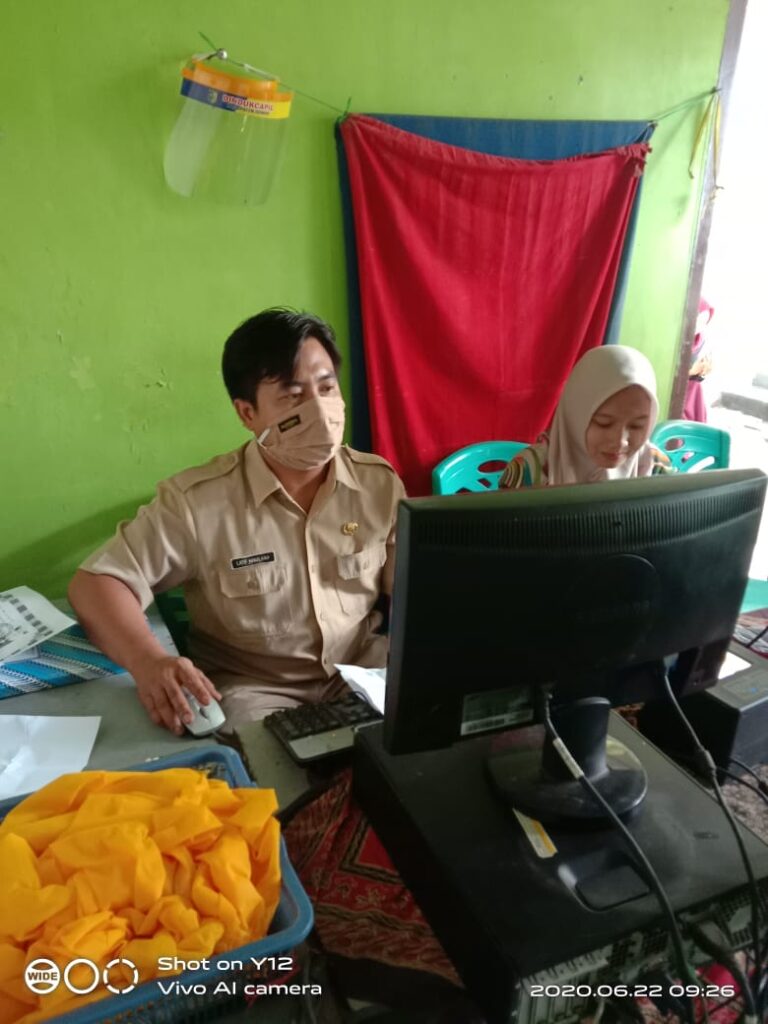 Demak – Latif Maulana, salah seorang Operator Dindukcapil Demak di TPDK Kecamatan Karangtengah yang kemarin (22/6) bertugas melakukan perekaman data KTP-el pada Intan Arinal Muna. Intan yang merupakan warga desa Temuroso Rt 09 Rw 04 Kecamatan Guntur ini mengajukan permohonan perekaman data untuk KTP-el dirinya. Karena dirinya telah berusia 18 tahun pada bulan September nanti.