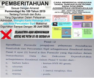 Demak – Sabtu (13/6), Tindak lanjut dari Peraturan Menteri Dalam Negeri Nomor 109 Tahun 2019 tentang Formulir dan Buku yang digunakan dalam Administrasi Kependudukan, terkait penggunaan kertas HVS A4 80 gram untuk pencetakan Kartu Keluarga (KK) untuk sementara dan akan menyusul dokumen-dokumen lainnya jika stok persediaan blangko sudah habis. Di dalam Peraturan Menteri Dalam Negeri …
