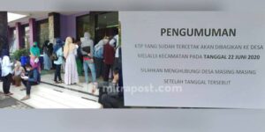 Demak – Sejumlah warga Demak kecele saat mengambil KTP elektronik Dinas Kependudukan dan Catatan Sipil. Hal itu dikarenakan terhitung 9 Juni hingga 22 Juni 2020 nanti tidak menerima pengambilan KTP-el. Salah satunya Irma, warga Kecamatan Wonosalam ini harus pulang tanpa hasil karena tidak mengetahui informasi tersebut. “Saya kira bisa langsung ambil ke sini, ternyata malah …