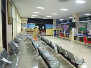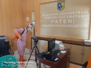 Penyemprotan Disinfektan Di Ruang Pelayanan Kecamatan Karanganyar