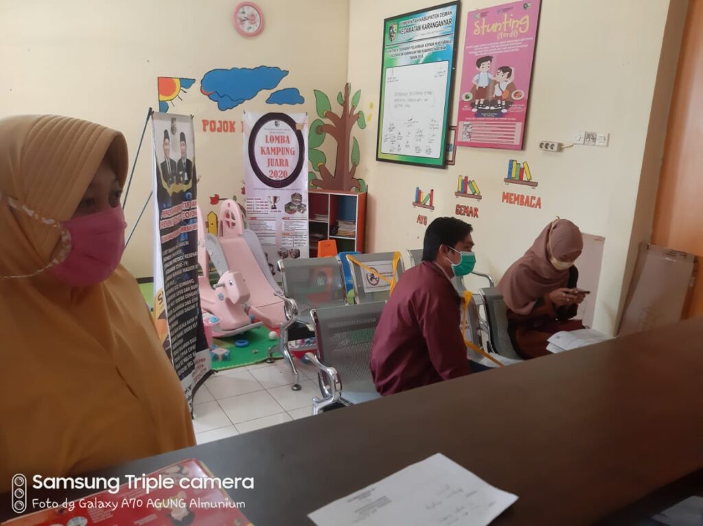 Kini ada beberapa warga yang mengantri di Kecamatan Karanganyar untuk konsultasi tentang bagaimana cara mendaftarkan KTP dan Akta kelahiran pada Endang Sulistyowati, Operator Dindukcapil Demak di TPDK Kecamatan Karanganyar, hari ini (1/7). Mereka bersemangat karena cukup daftar dari rumah dan nanti apabila KTP sudah jadi bisa di antar ke alamat tujuan masing-masing. Jadi warga tidak perlu untuk datang dan mendaftarka KTP ke dinas yang dituju.