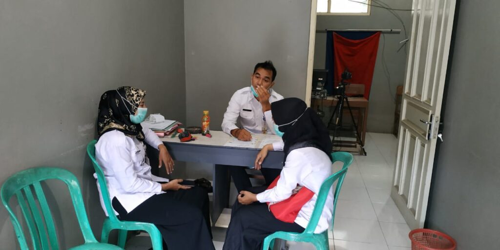 Demak – Kemarin Jumat (3/7), Koordinator dan Operator Dindukcapil Demak yang bertugas di TPDK Kecamatan Wedung menerima kunjungan tamu dari petugas Puskesmas Wedung I. Nur Khalimah, salah satu petugas puskesmas Wedung I menanyakan kepada Abdul Shokib dan Arif Efendi mengenai kondisi pelayanan di TPDK Kecamatan Wedung ini, apakah warga Wedung yang mengurus dokumen kependudukan menggunakan masker atau tidak.