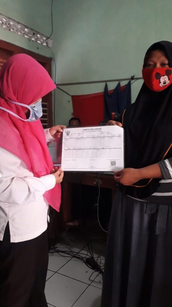 Demak – Kemarin (3/7) Maslakhatuzzahro menyerahkan dokumen kependudukan berupa Kartu Keluarga (KK) kepada salah satu warga di Kecamatan Guntur. Adalah KK milik Zaenuri warga desa Gaji, Kecamatan Guntur.