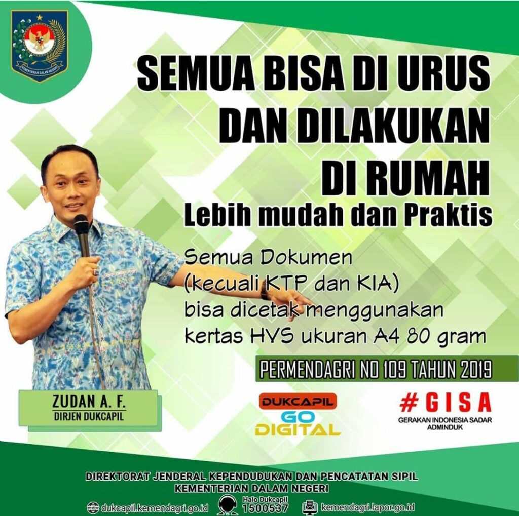 Kebijakan ini sebagai implementasi dari Permendagri No. 109 th 2019 tentang Formulir dan Buku yang digunakan dalam Administrasi Kependudukan dengan penerapan penggunaan kertas A4 ukuran 80gram, kecuali KTP-el dan KIA, tidak lagi menggunakan blanko seperti yang sebelumnya. Namun diganti dengan kertas HVS A4 80gram berwarna putih. Dokumen diterbitkan dengan menggunakan sistem Tanda Tangan Elektronik (TTE) dalam bentuk QR code. Dokumen yang terbit sebelumnya masih berlaku dan tidak perlu diganti apabila tidak ada perubahan data, hilang atau rusak.