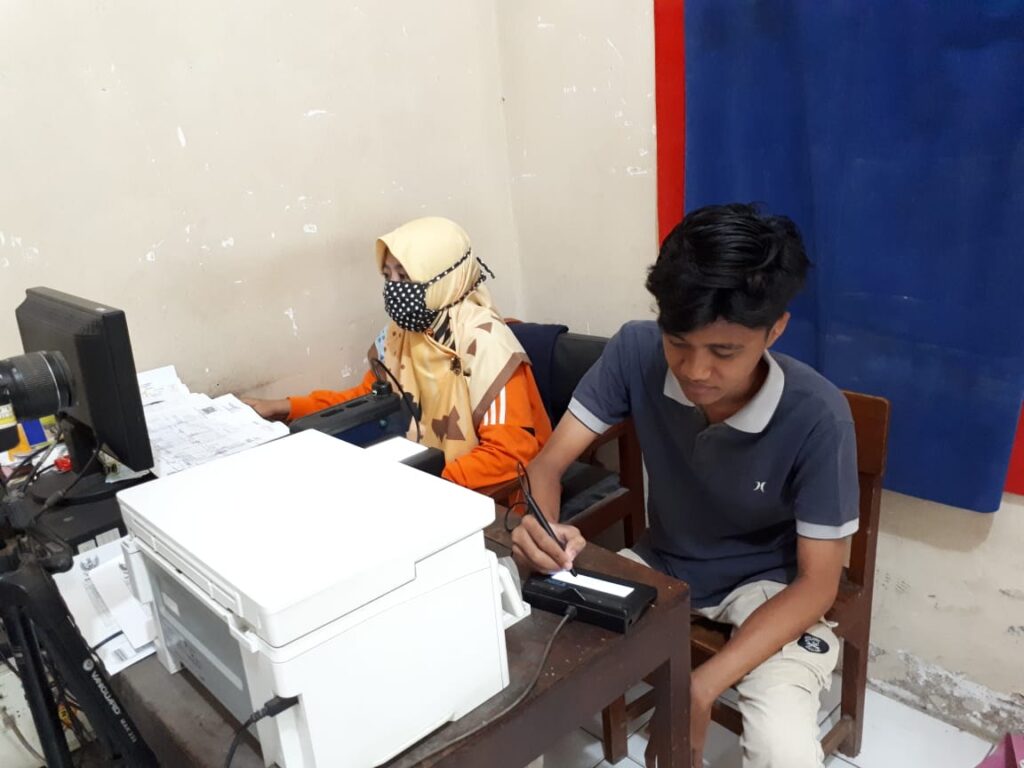 Demak – Alvito Mukti yang beralamatan Desa Batursari Kecamatan Mranggen, melakukan Perekaman e-KTP dan petugas Operator Dindukcapil Demak di TPDK Kecamatan Mranggen hari Jumat (10/7) menerima pengajuan permohonan perekaman data KTP-el dari Alvito warga di Kecamatan Mranggen . Perekaman salah satu warga asal kelahiran dari Kecamatan Mranggen Kabupaten Demak.