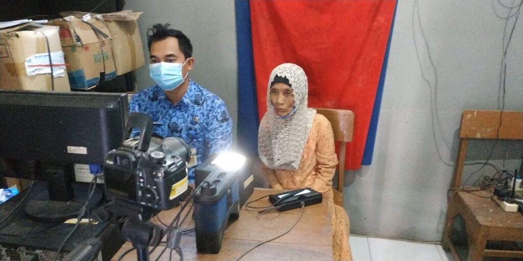 Demak – Arif Efendi, Operator Dindukcapil Demak di TPDK Kecamatan Wedung, Jumat (17/7) menerima pengajuan permohonan perekaman data KTP-el dari beberapa warga di Kecamatan Wedung, salah satunya warga yang telah berusia lanjut. Perekaman atas nama Hartatik, kelahiran dari Desa Berahan Wetan Kecamatan Wedung Kabupaten Demak.